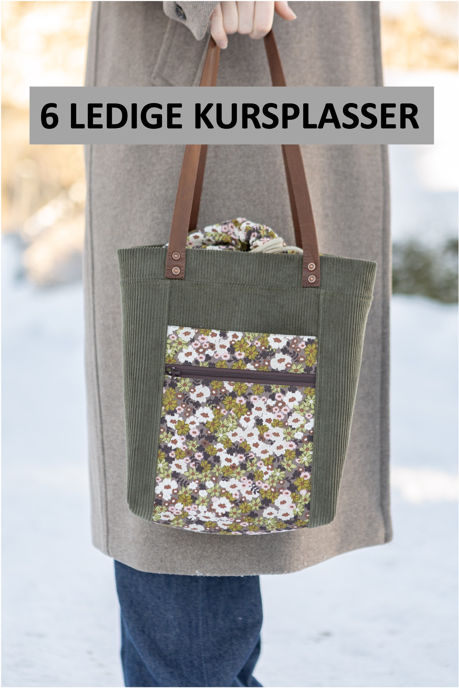 Bli med og sy en praktisk fôret veske med lærhanker, glidelåslomme og snørelukning i toppen. Vi syr i en stødig, solid bomullscordfløyel, og det blir mulig å velge mellom blå, …